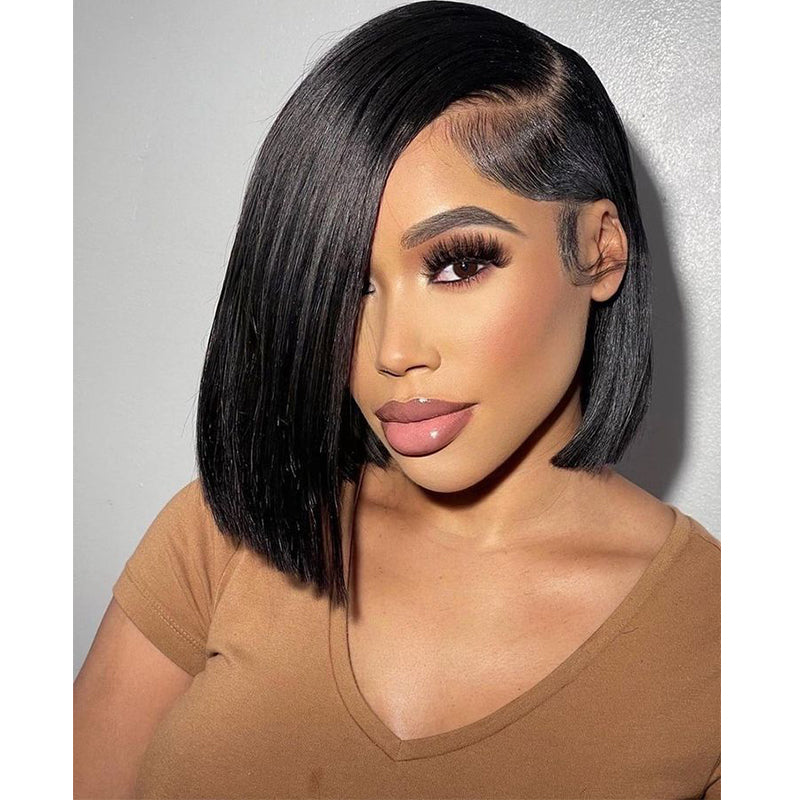 13x4 Side Part Asymmetrical Bob Wig Pre Plucked Lace Front Human Hair