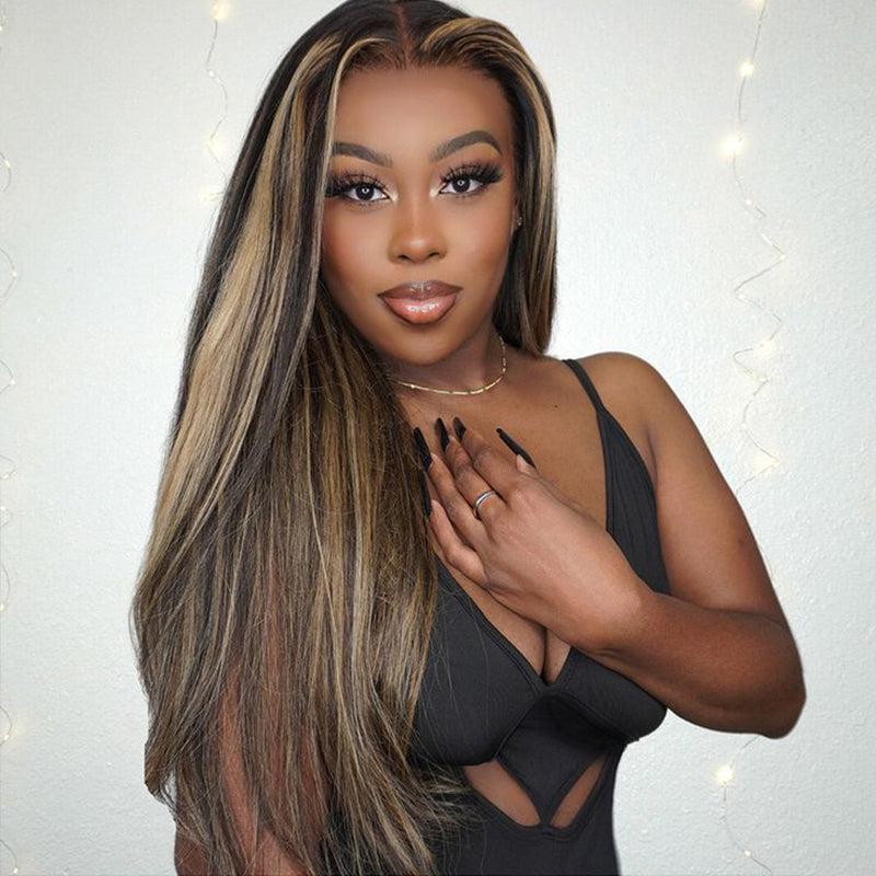 #2/27 Blonde Piano Highlight Hair Silky Straight Lace Front Wig
