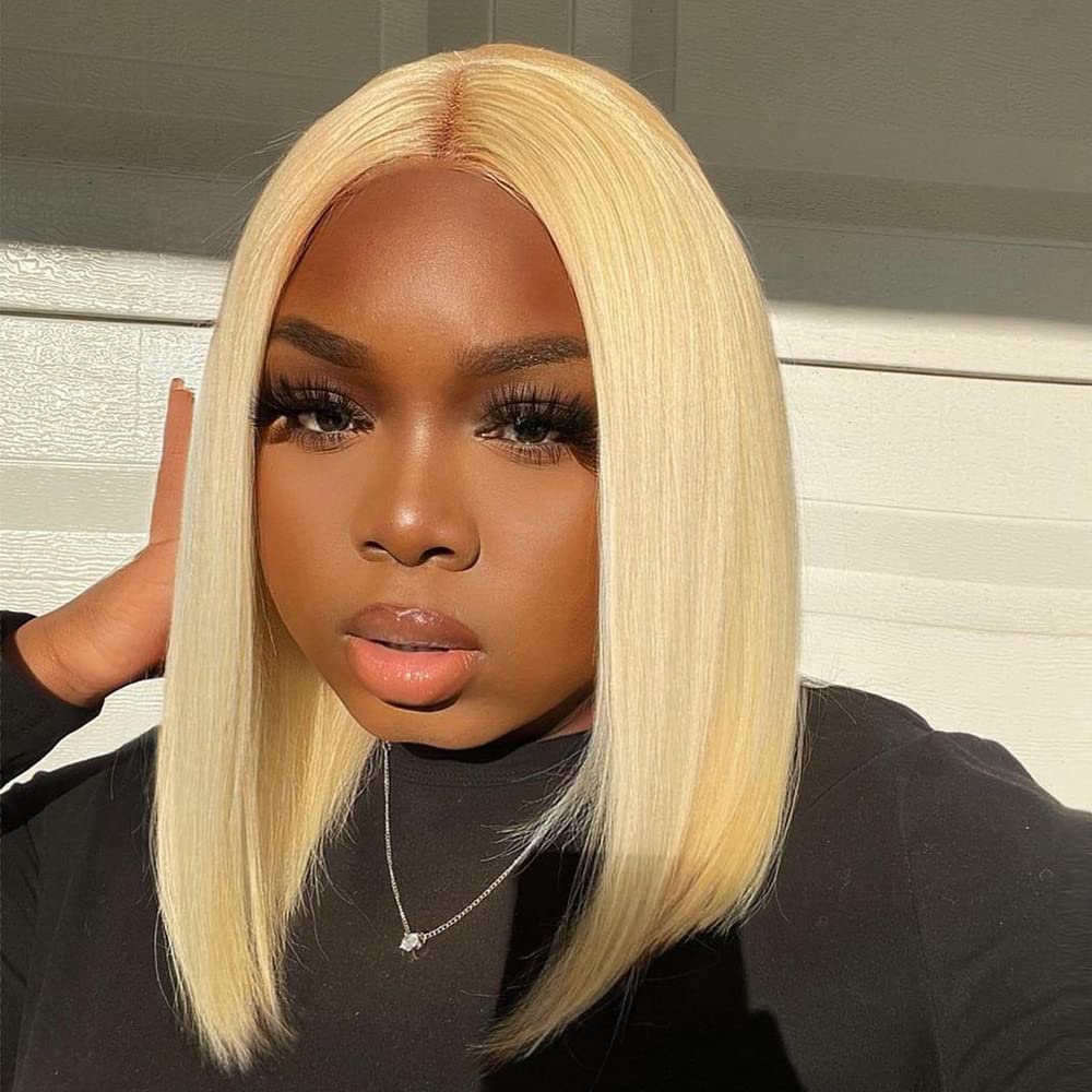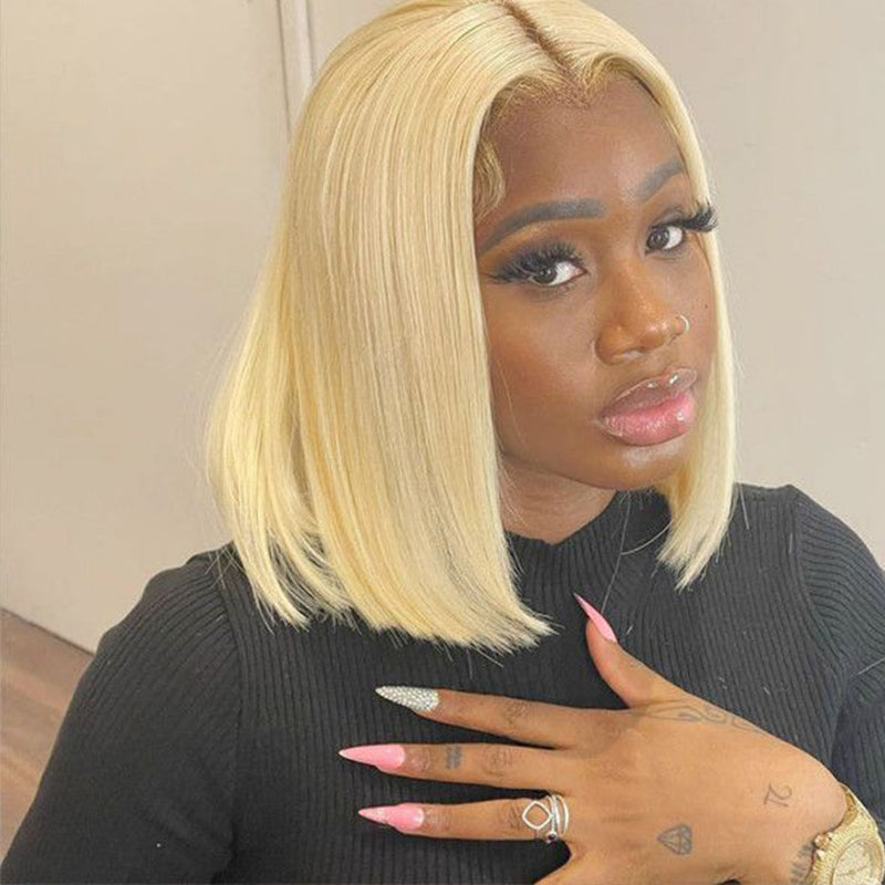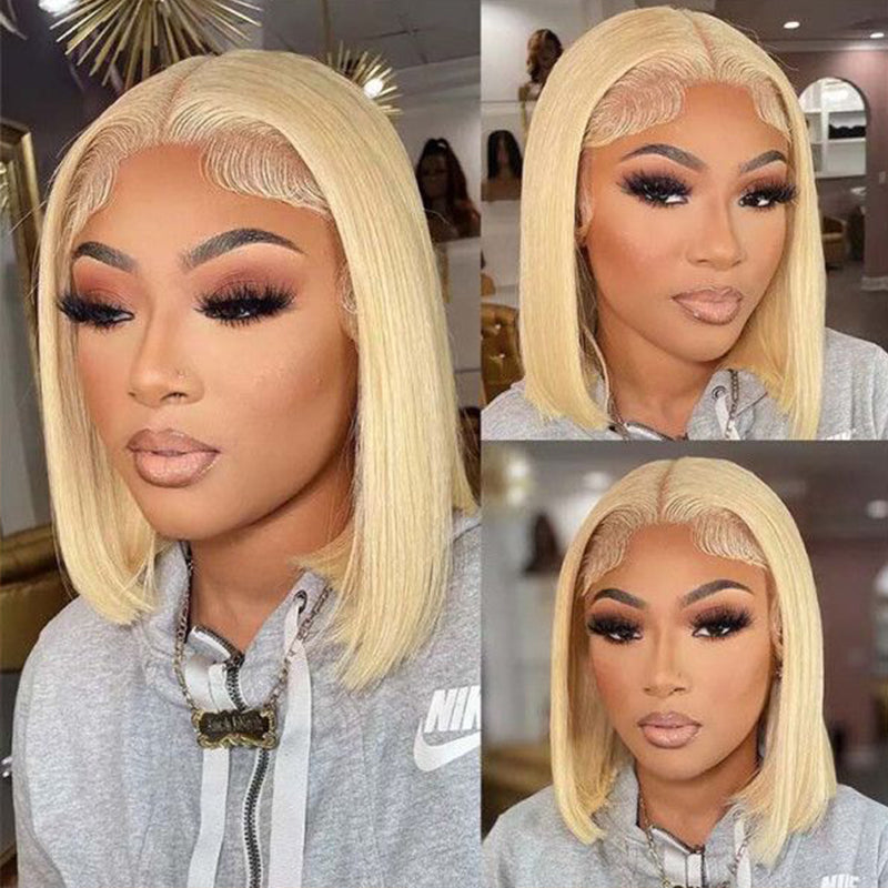 613 Blonde Bob Straight Human Hair Transparent Lace Wig